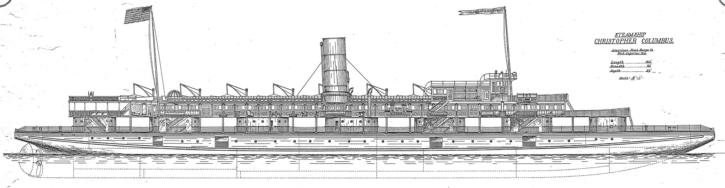 Technical drawing of the SS Christopher Columbus